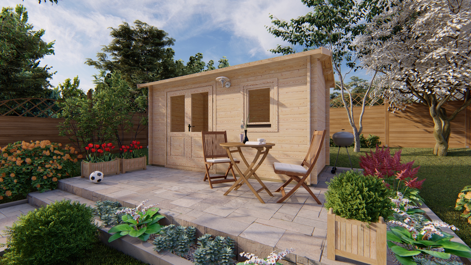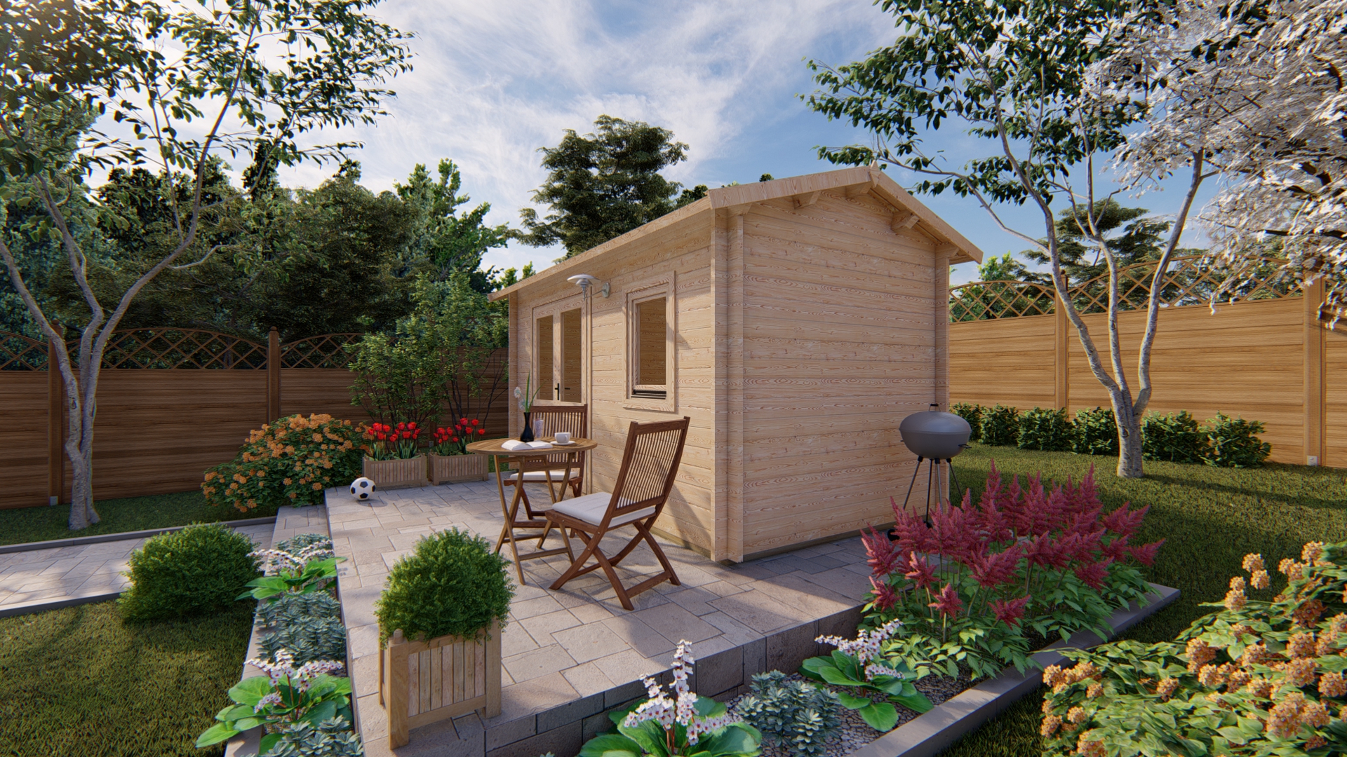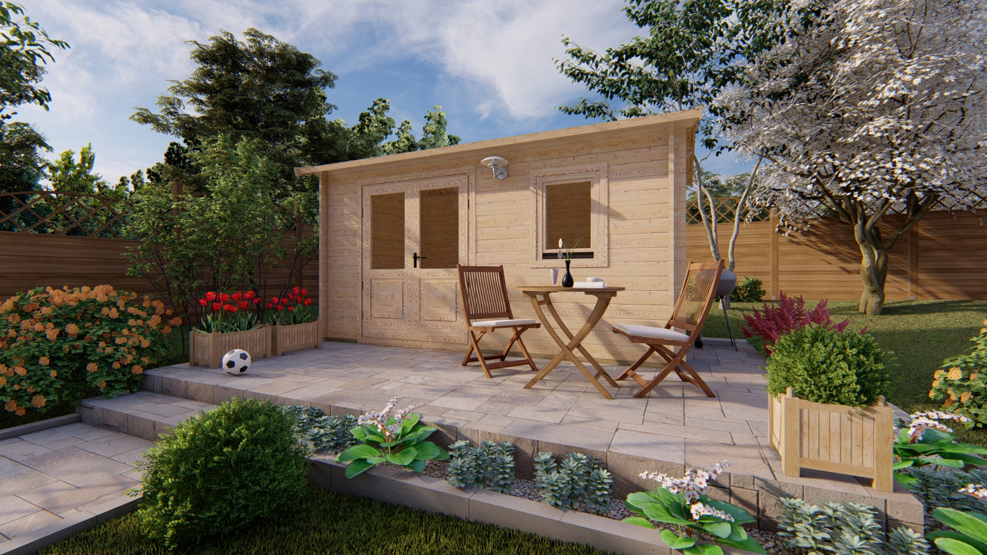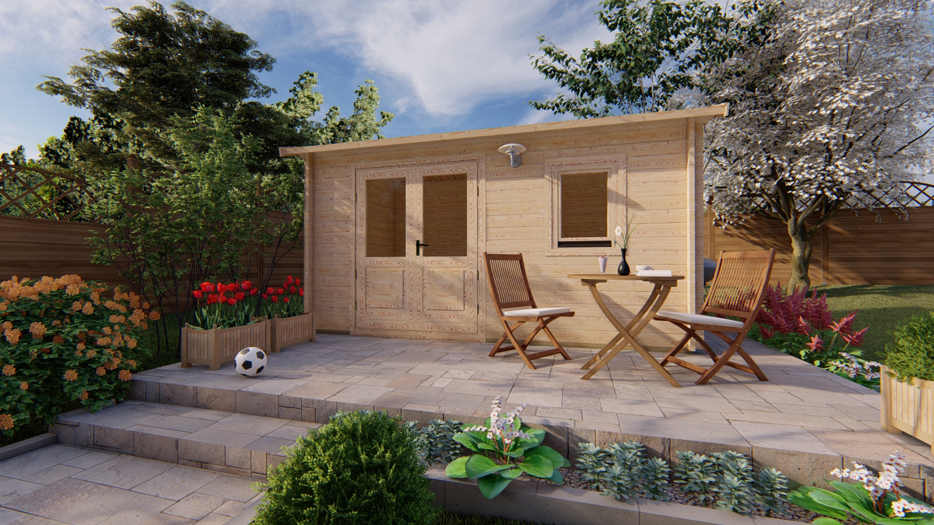 The garden house shown in the photos is from the “Premium” package.