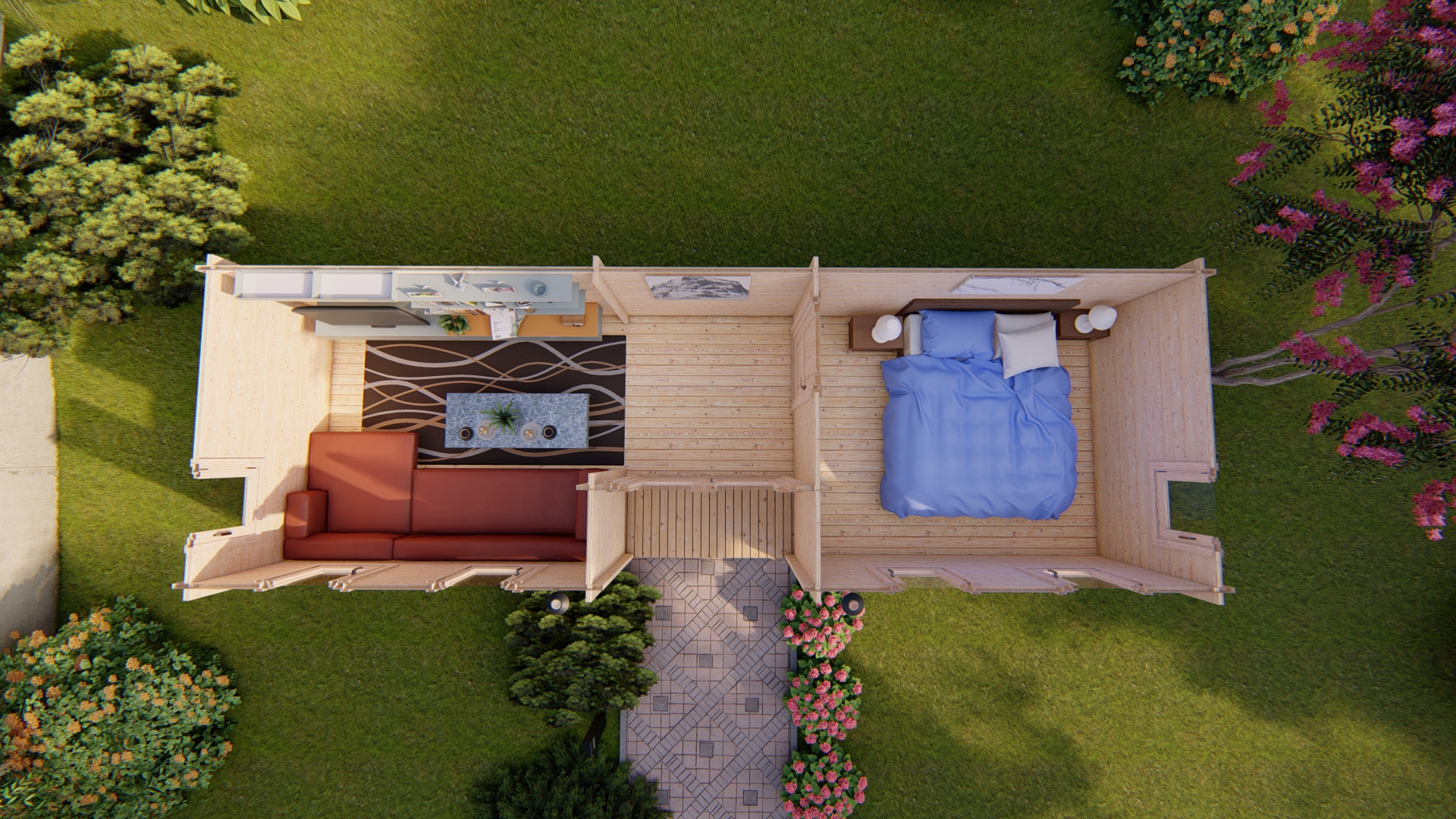 The garden house shown in the photos is from the “Premium” package.